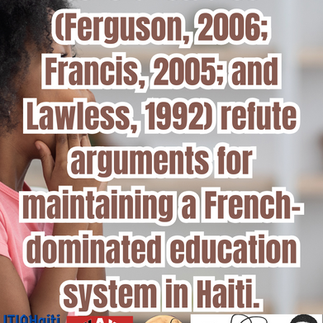 Selon Lowenthal & Comitas, 1973; DeRegt, 1984; DeGraff, 2003; Dejean, 2006, sèvi ak kreyòl kòm lang ansèyman Ayiti ap amelyore aprantisaj, alfabetizyon ak to gradyasyon, epi koyezyon sosyal ak enklizyon ap posib pou yon ekonomi estab.