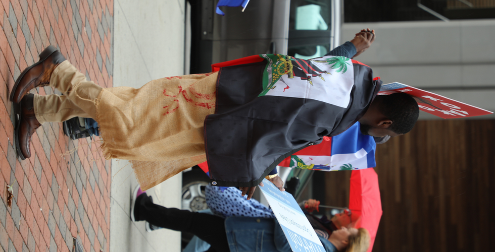The Bostonian Haitian Diaspora gathered in front of the John F. Kennedy Building on Monday, October 17, 2022, to express themselves on the 216 anniversary of the assassination of Jean Jacques Dessalines to make all Haitians in the world set their sights on our history as a nation, as a people! In attendance was the President of ITIAHaiti, Itiahism, Wilson Thelimo Louis. He expressed himself as a Haitian artist, poet, and writer promoting the Creole language! Thelimo made a gesture at the time that appeared to be misunderstood by the people there. He put the Blue and Red Haitian Flag, known by the Haitian Constitution, on the ground and stood on it while having the Black and Red Flag draped around his body.